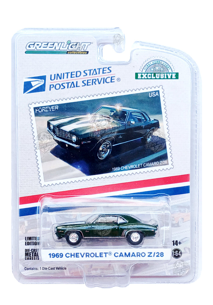 EXCLUSIVES Greenlight Collectibles United States Postal Service 1969 Chevrolet Camaro Z/28 - Green (Scale 1:64)
