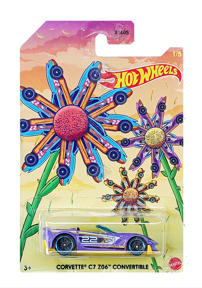 EXCLUSIVES Hot Wheels Premium Corvette C7 Z06 Convertible - Purple / Yellow - 2021 Card (With Protector Case)