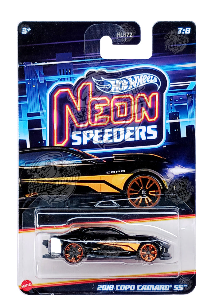 EXCLUSIVES Hot Wheels Premium Neon Speeders 2018 Copo Camaro SS - Black / Orange - 2025 Card (With Protector Case)