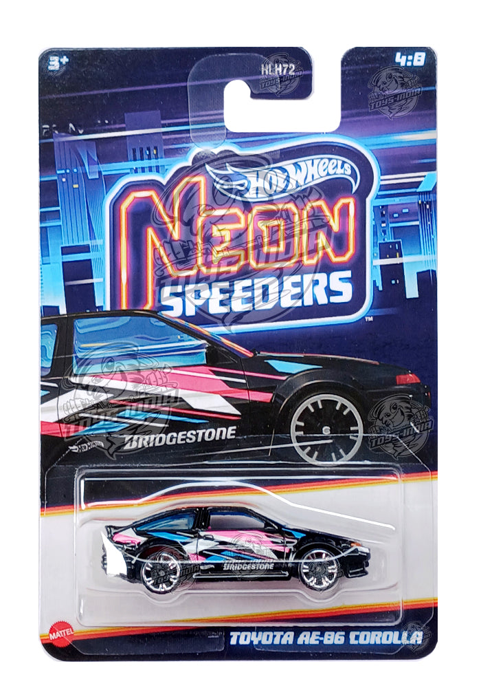 EXCLUSIVES Hot Wheels Premium Neon Speeders Toyota AE-86 Corolla - Black / Pink - 2025 Card (With Protector Case)