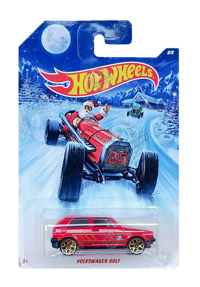 EXCLUSIVES Hot Wheels Holiday Hot Rods Volkswagen Golf MK2 - Red - 2014 Card (With Protector Case)