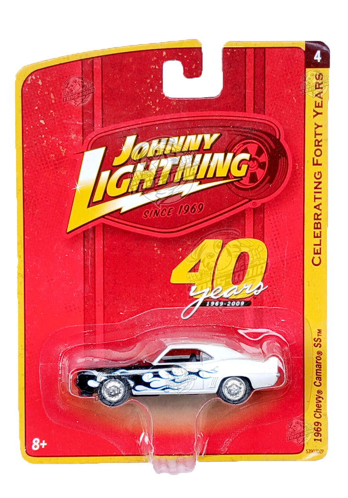 EXCLUSIVES Johnny Lightning 40 Years 1969 Chevy Camaro SS - Black / White / Blue Card 2 (Scale 1:64)