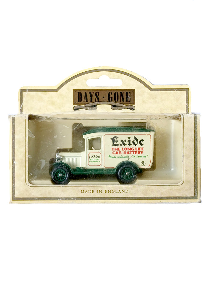 EXCLUSIVES Lledo UK Models of Days Gone - 1934 Chevrolet Van Exide Double Decker Bus - Green / Beige(Scale 1:43)