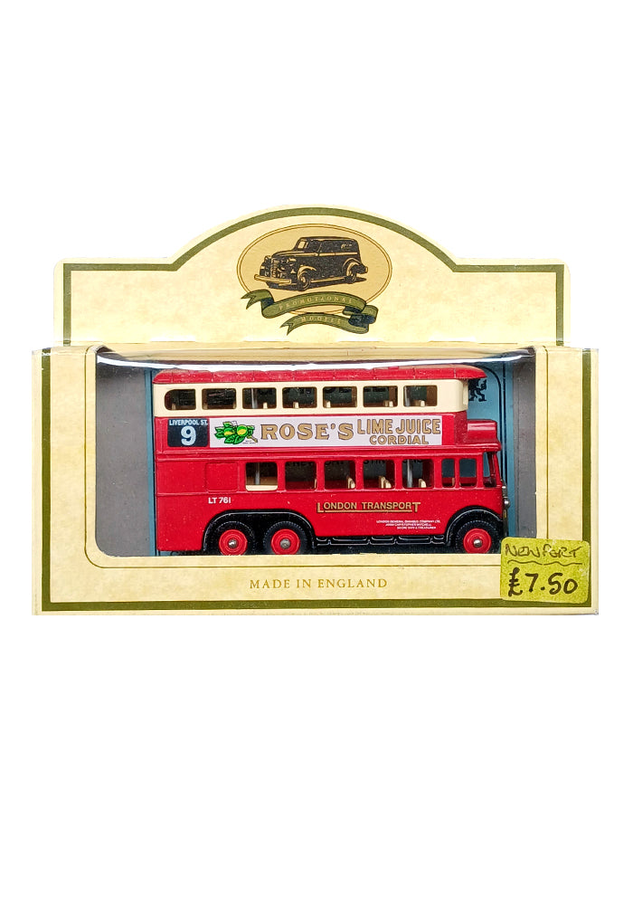 EXCLUSIVES Lledo UK Models of Days Gone - Rose's Cordial Decker Bus - Red / Beige (Scale 1:43)