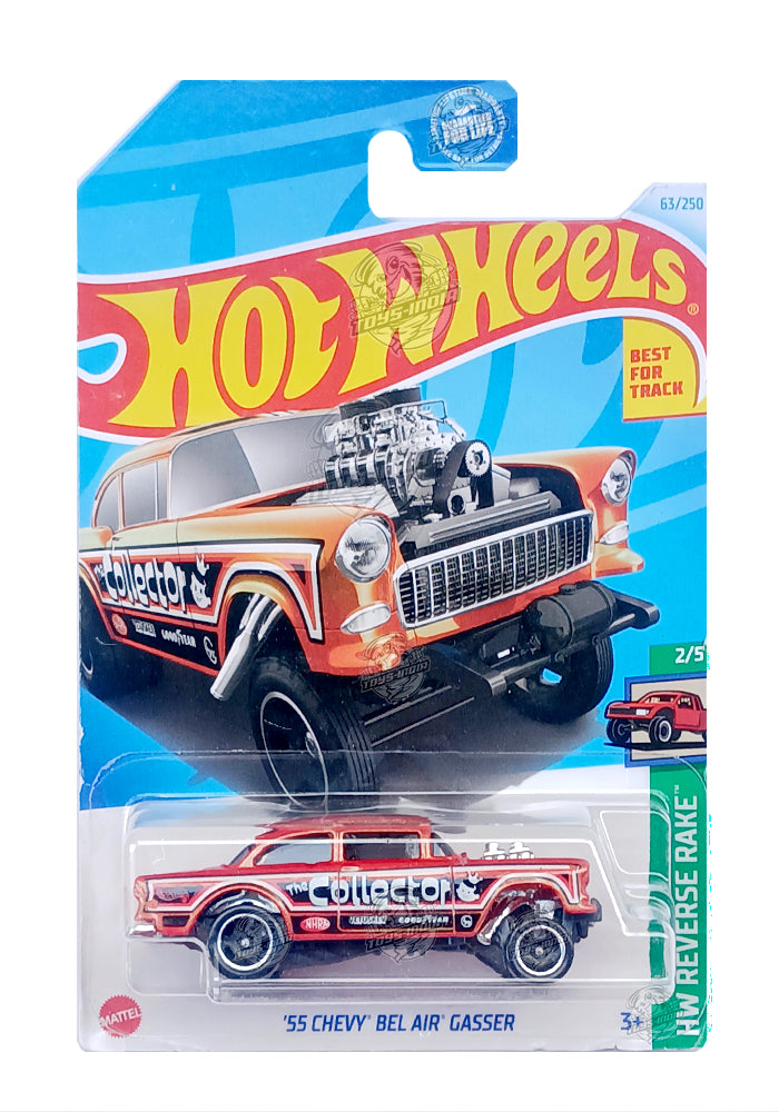 EXCLUSIVES Hot Wheels '55 Chevy Bel Air Gasser - Red - 2021 Card (Blister Damage / Car in Excellent Condition) (With Protector Case)