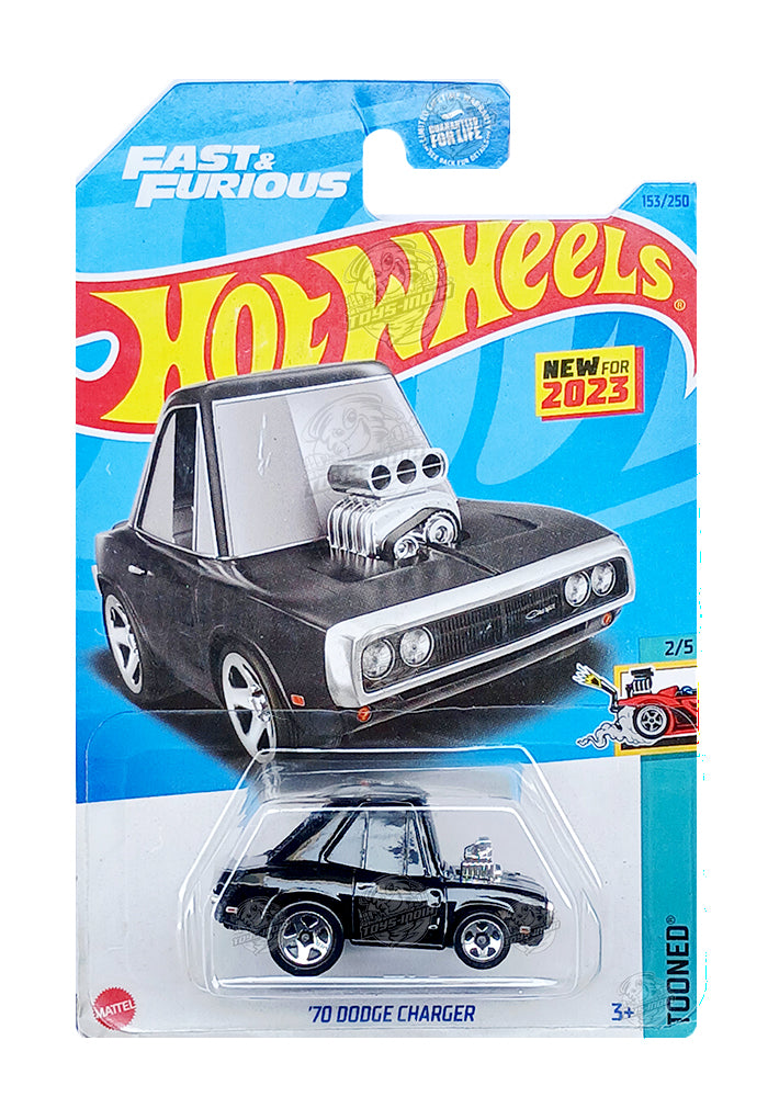 EXCLUSIVES Hot Wheels Fast & Furious Tooned '70 Dodge Charger - Black - 2021 Card (With Protector Case)