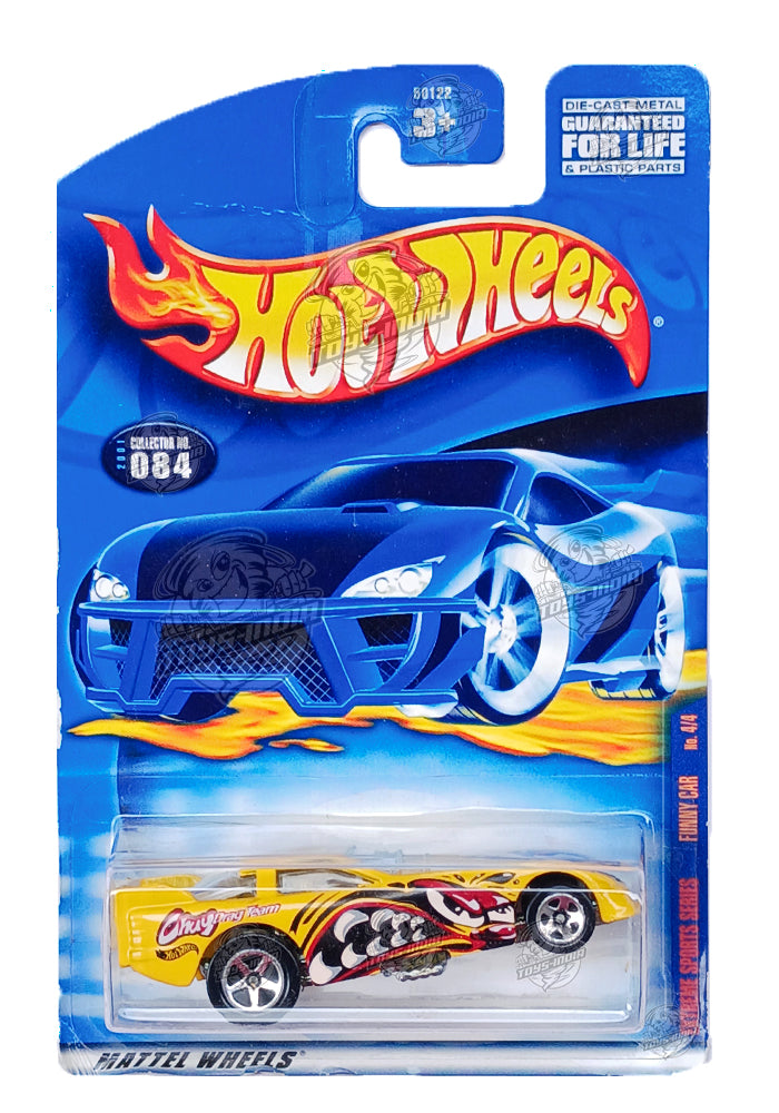 EXCLUSIVES Hot Wheels Funny Car - Yellow - 2000 Card (With Protector Case)