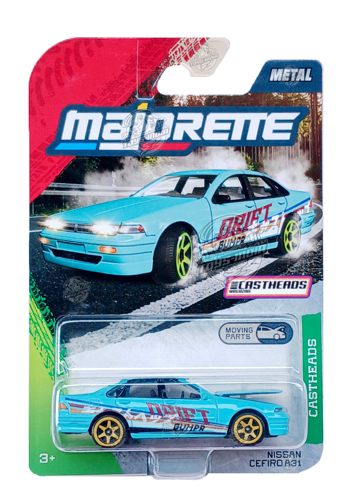 Majorette Castheads Cars Nissan Cefiro A31 - Blue - 2025 Card (Moving Parts)