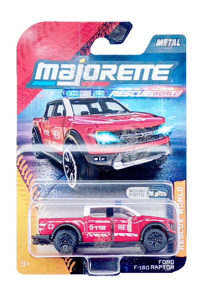 Majorette Rescue World Ford F-150 Raptor - Red - 2025 Card (Moving Parts)