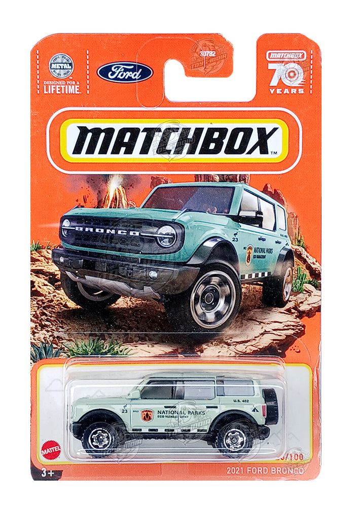 EXCLUSIVES Matchbox 2021 Ford Bronco - Green - 2022 Card (With Protector Case)