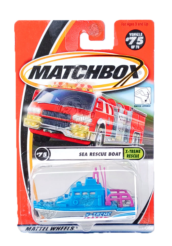 EXCLUSIVES Matchbox Rescue Boat - White / Blue - 2000 Card (With Protector Case)