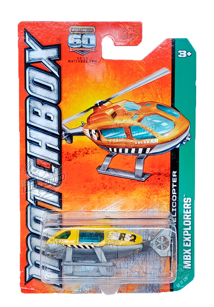 EXCLUSIVES Matchbox Rescue Helicopter - Yellow / Grey - 2012 Card (With Protector Case)
