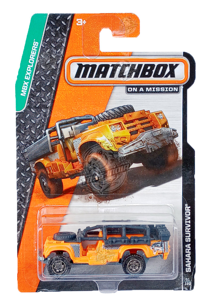 EXCLUSIVES Matchbox Sahara Survivor - Orange / Black - 2013 Card (With Protector Case)