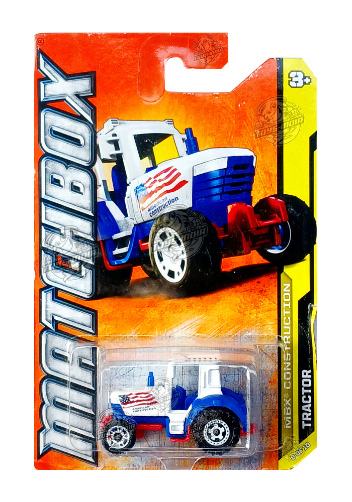 EXCLUSIVES Matchbox Tractor - White / Blue - 2011 Card (Card Damage / Car in Excellent Condition) (With Protector Case)