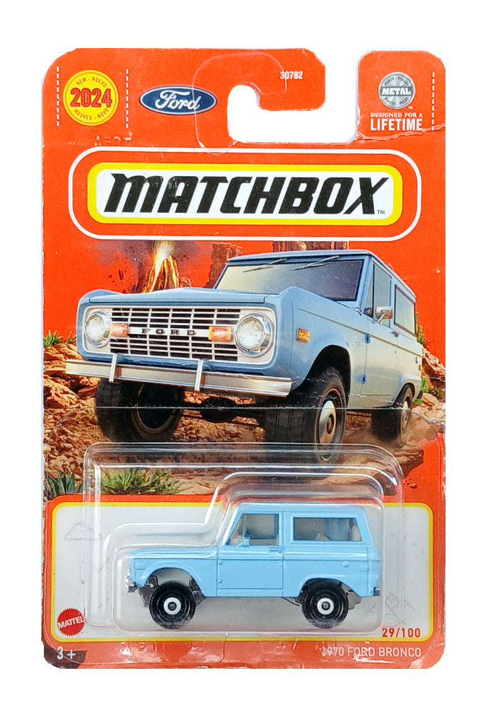 EXCLUSIVES Matchbox 1970 Ford Bronco- Blue - 2024 Card (Creased Card / Car in Excellent Condition) (With Protector Case)