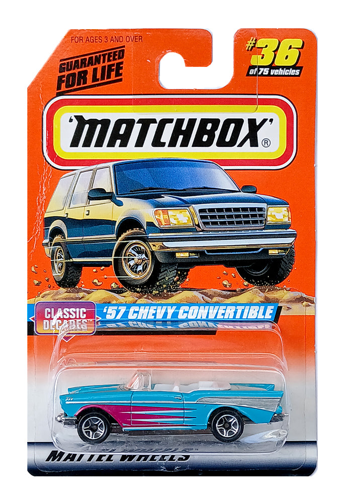 EXCLUSIVES Matchbox '57 Chevy Convertible - Green / Purple - 1997 Card (With Protector Case)