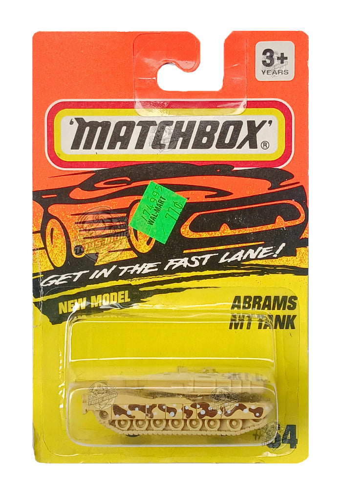 EXCLUSIVES Matchbox Abrams M1 Tank - Beige - 1994 Card (Creased Card / Car in Excellent Condition) (With Protector Case)