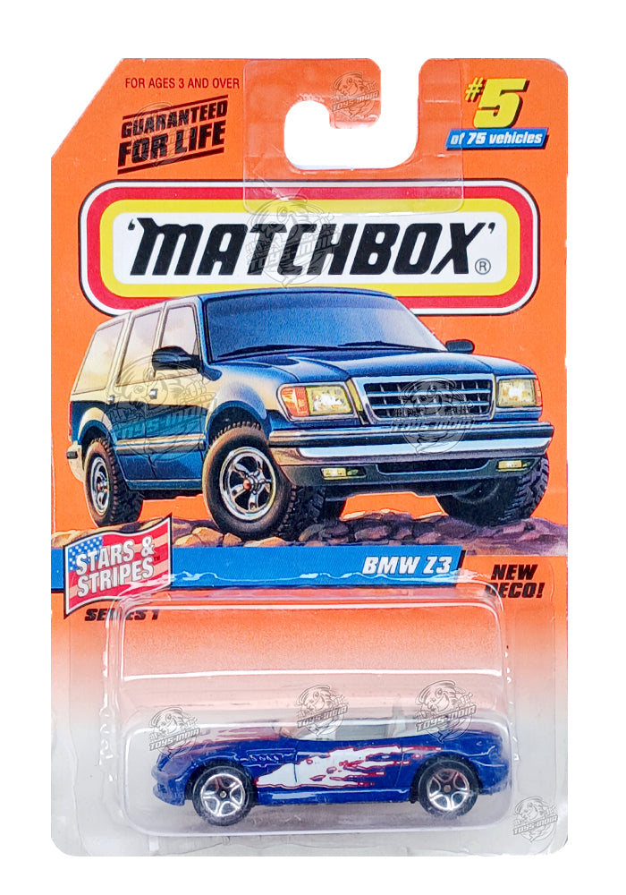 EXCLUSIVES Matchbox BMW Z3 - Blue - 1997 Card (With Protector Case)