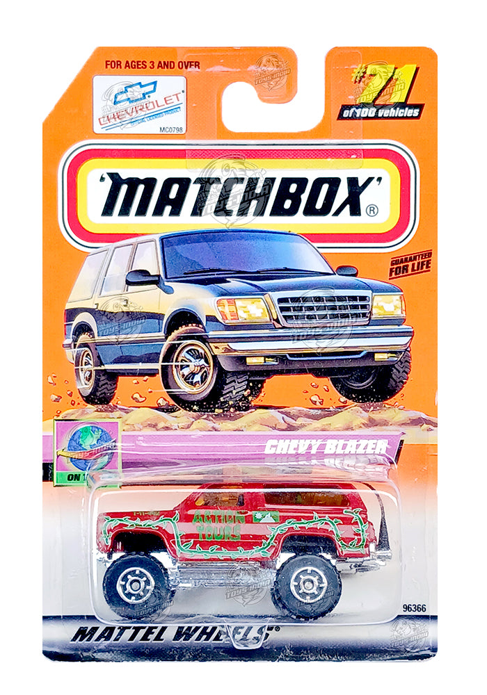 EXCLUSIVES Matchbox Chevy Blazer - Red - 1999 Card (With Protector Case)