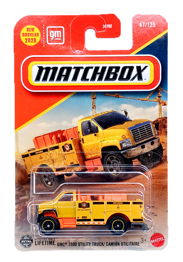 EXCLUSIVES Matchbox GMC 3500 Utility Truck - Yellow / Orange - 2024 Card (With Protector Case)