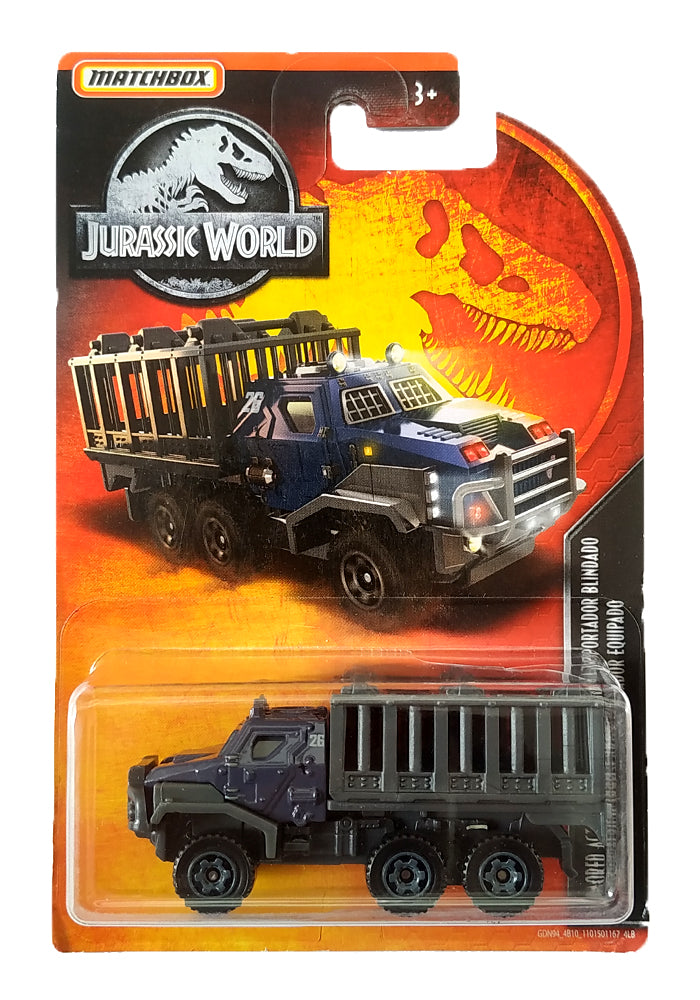 EXCLUSIVES Matchbox Jurassic World Armored Action Transporter - Grey - 2019 Card (Blister Damage but Car in Excellent Condition) (With Protector Case)