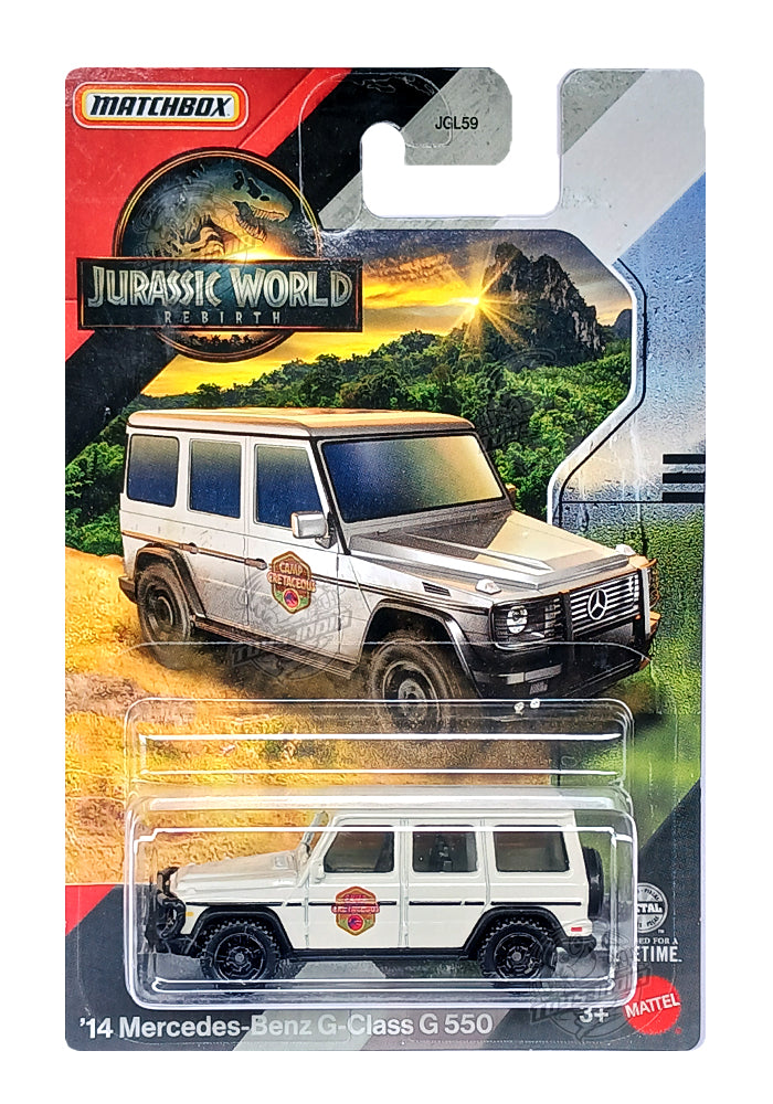 EXCLUSIVES Matchbox Jurassic World Rebirth '14 Mercedes-Benz G-Class G 550 - White - 2024 Card (With Protector Case)