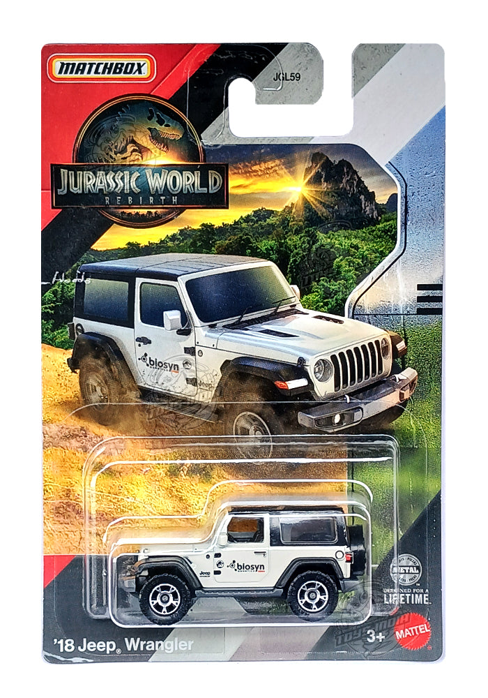 EXCLUSIVES Matchbox Jurassic World Rebirth '18 Jeep Wrangler - White / Black - 2024 Card (With Protector Case)