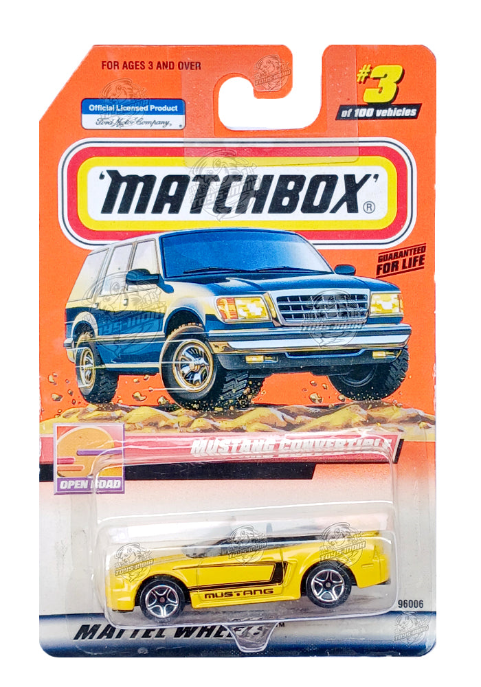 EXCLUSIVES Matchbox Mustang Convertible - Yellow / Black - 1999 Card (With Protector Case)