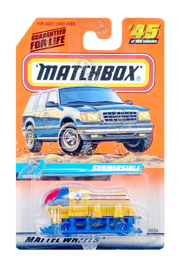 EXCLUSIVES Matchbox Submersible - Yellow / Blue - 1998 Card (With Protector Case)