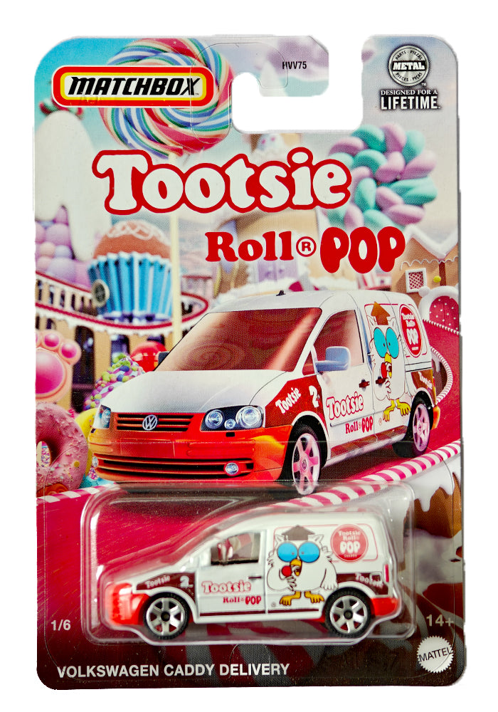 EXCLUSIVES Matchbox Tootsie Roll Pop Volkswagen Caddy Delivery - White / Orange - 2023 Card (With Protector Case)