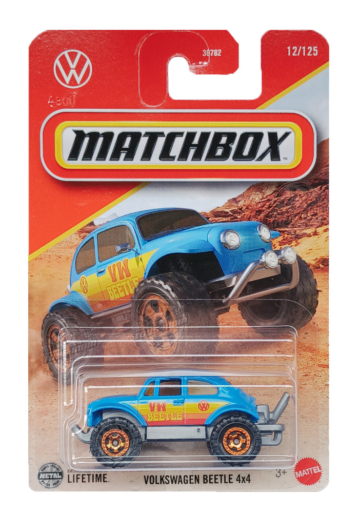 EXCLUSIVES Matchbox Volkswagen Beetle 4x4 - Blue / Yellow - 2024 Card (With Protector Case)