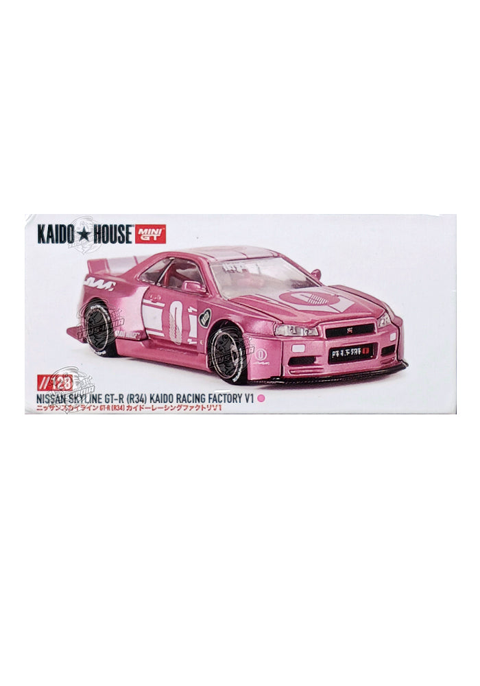 EXCLUSIVES MINI GT Kaido House Nissan Skyline GT-R (R34) Kaido Racing Factory V1 - Pink (Scale 1:64)