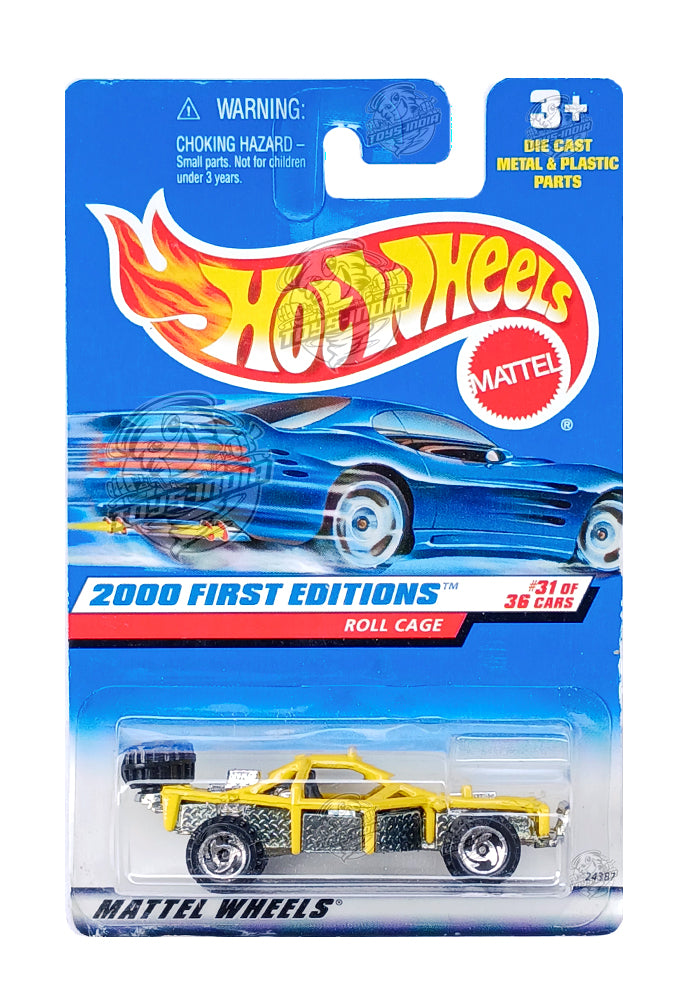 EXCLUSIVES Hot Wheels 2000 First Editions Roll Cage - Yellow & Silver - 1999 Card (With Protector Case)