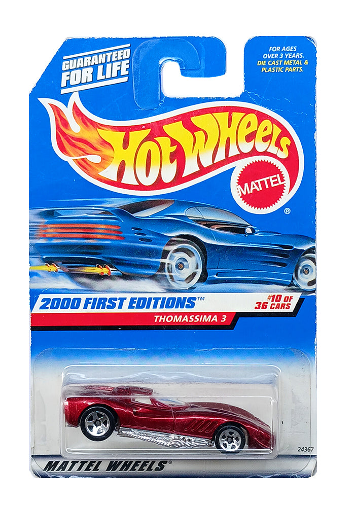 EXCLUSIVES Hot Wheels 2000 First Editions Thomassima 3 - Red / Silver - 1999 Card (With Protector Case)