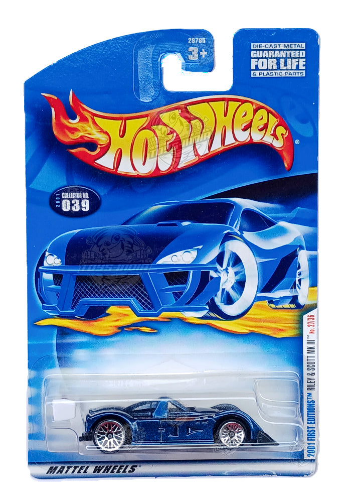 EXCLUSIVES Hot Wheels 2001 First Editions Riley & Scott MK III - Blue - 2000 Card (With Protector Case)