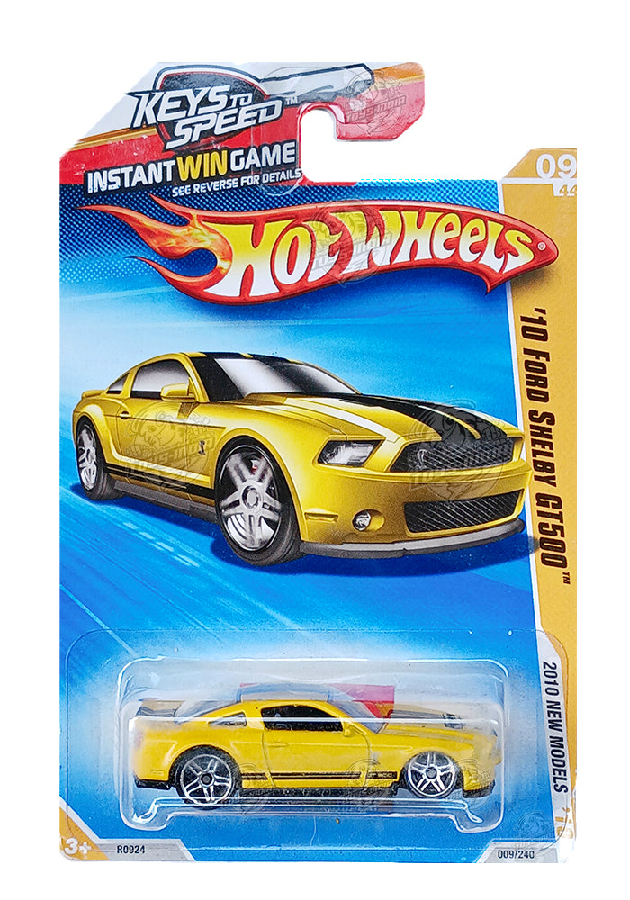 EXCLUSIVES Hot Wheels 2010 New Models '10 Ford Shelby GT500 - Yellow / Black - 2009 Card (With Protector Case)