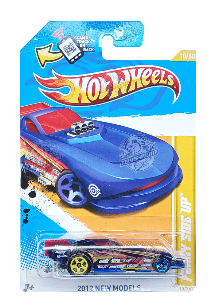EXCLUSIVES Hot Wheels 2012 New Models Funny Side Up - Blue / Red - 2011 Card (With Protector Case)