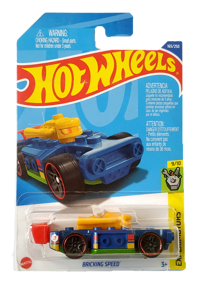 EXCLUSIVES Hot Wheels Bricking Speed - Blue / Yellow - 2021 Card (With Protector Case)