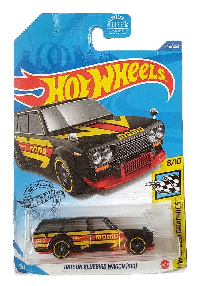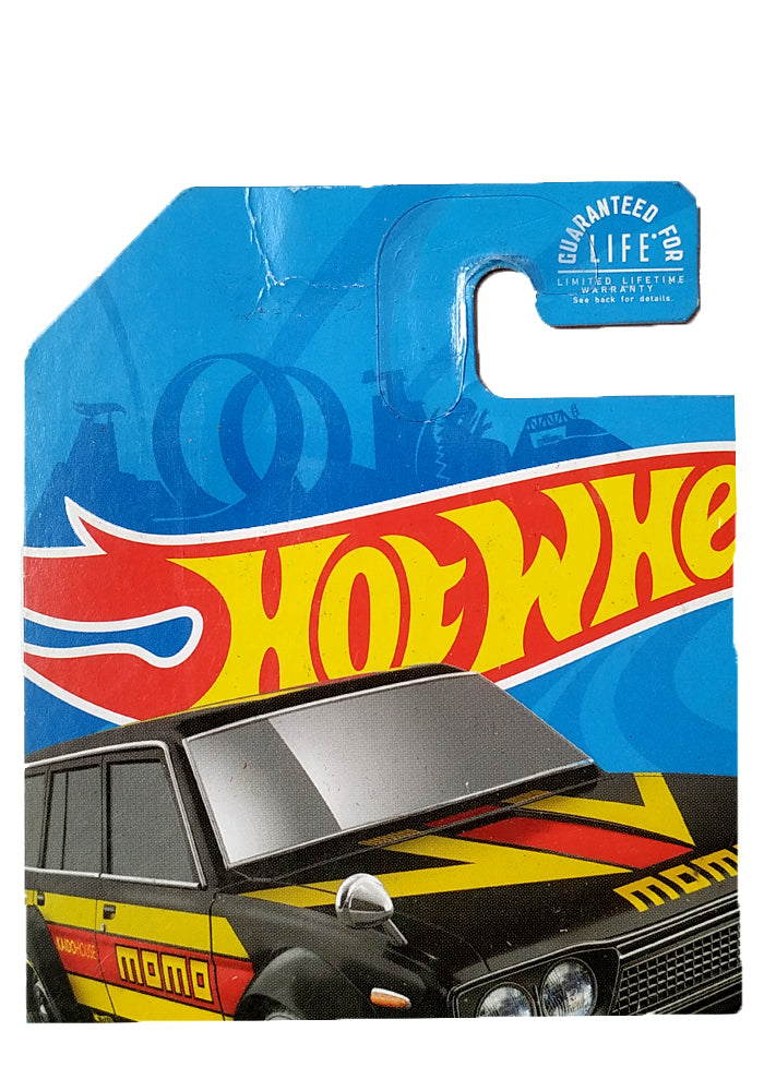 EXCLUSIVES Hot Wheels Datsun Bluebird Wagon (510) - Black / Yellow - 2017 Card (Creased Card) (With Protector Case)