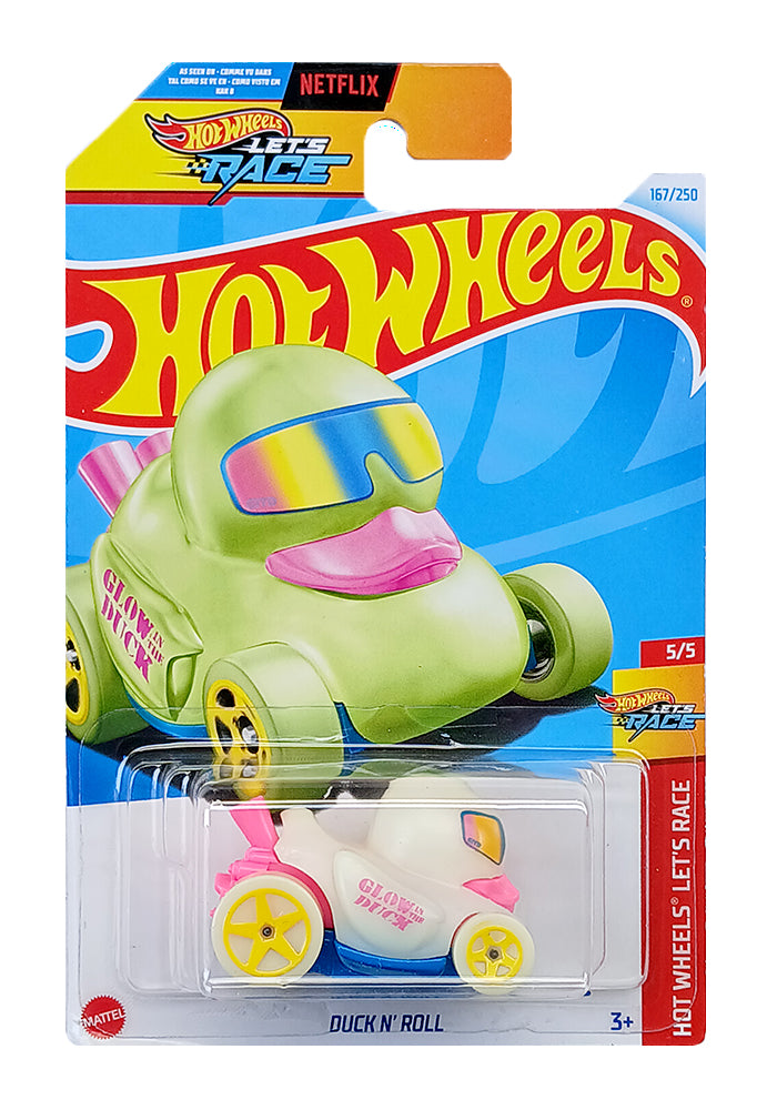 EXCLUSIVES Hot Wheels Duck 'N Roll - White / Yellow - 2021 Card (With Protector Case)