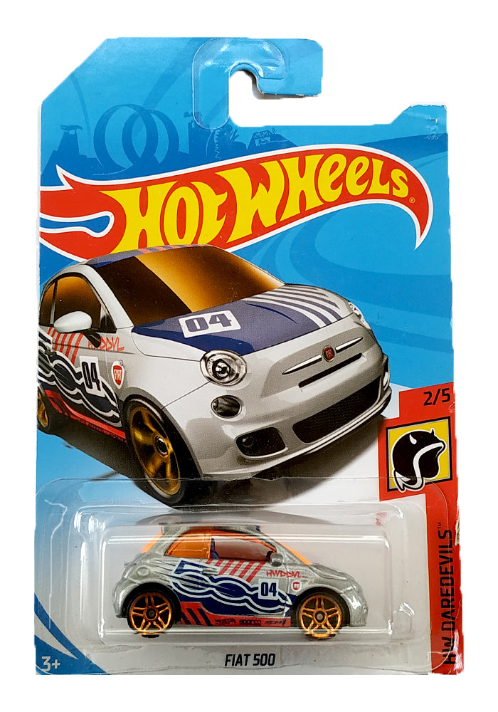 EXCLUSIVES Hot Wheels Fiat 500 - Silver - 2018 Card (With Protector Case)