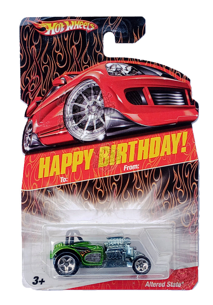 EXCLUSIVES Hot Wheels Happy Birthday Altered State - Green / Silver - 2006 Card (With Protector Case)