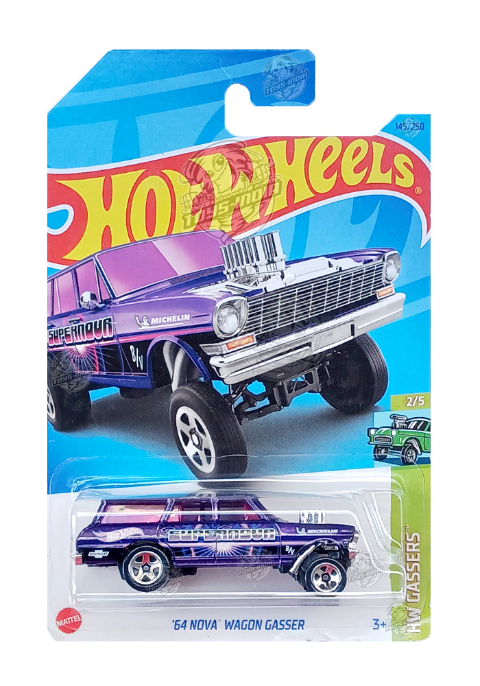 EXCLUSIVES Hot Wheels HW Gassers '64 Nova Wagon Gasser - Blue - 2021 Card (With Protector Case)
