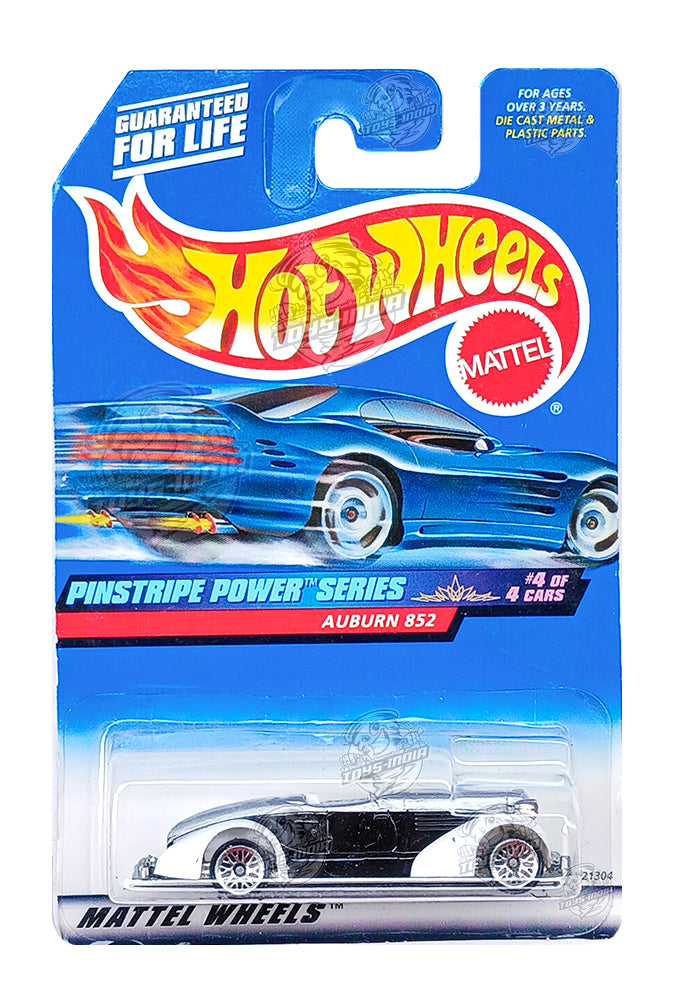 EXCLUSIVES Hot Wheels Pinstripe Power Series Auburn 852 - Black / White - 1998 Card (With Protector Case)