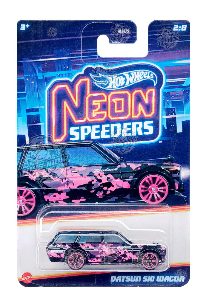 EXCLUSIVES Hot Wheels Premium Neon Speeders Datsun S10 Wagon - Black / Pink - 2022 Card (With Protector Case)