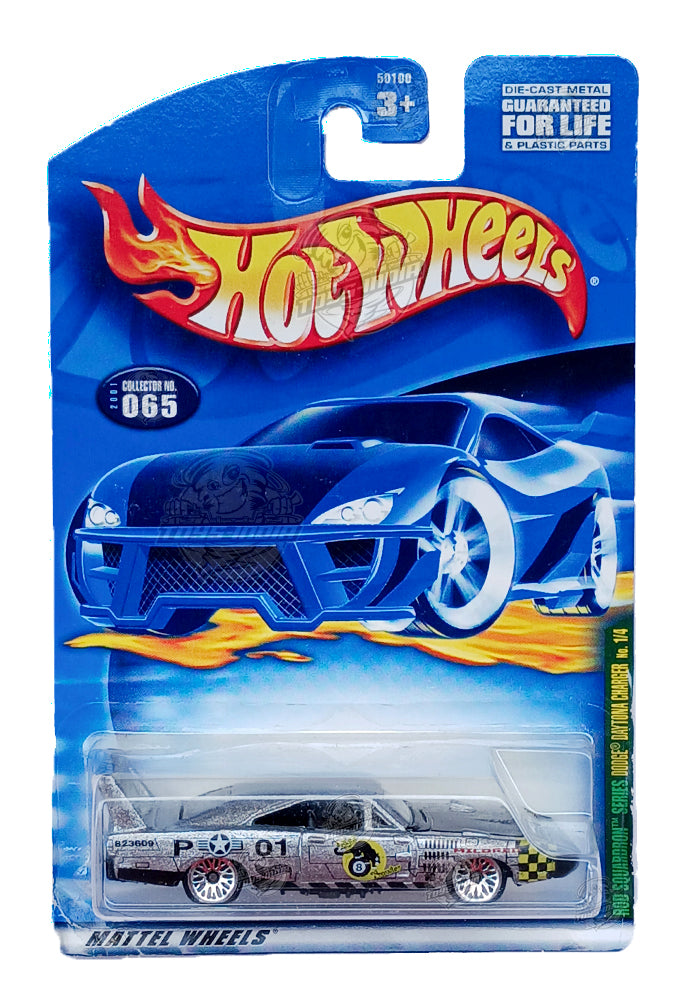 EXCLUSIVES Hot Wheels Rod Squadron Dodge Charger Daytona - Silver - 2000 Card (With Protector Case)