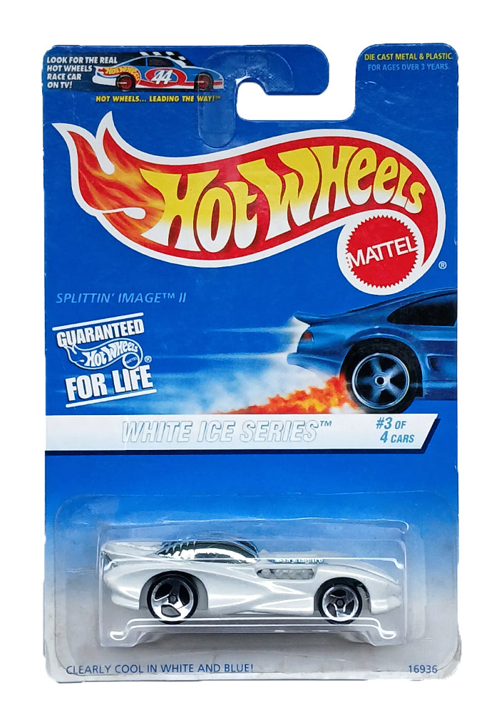 EXCLUSIVES Hot Wheels White Ice Series Splittin' Image II - White - 1998 Card (With Protector Case)