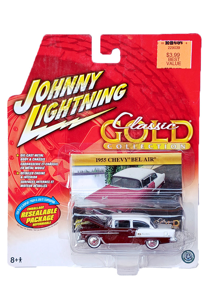 EXCLUSIVES Johnny Lightning Classic Gold Collection 1955 Chevy Bel Air - Red / White (Scale 1:64)