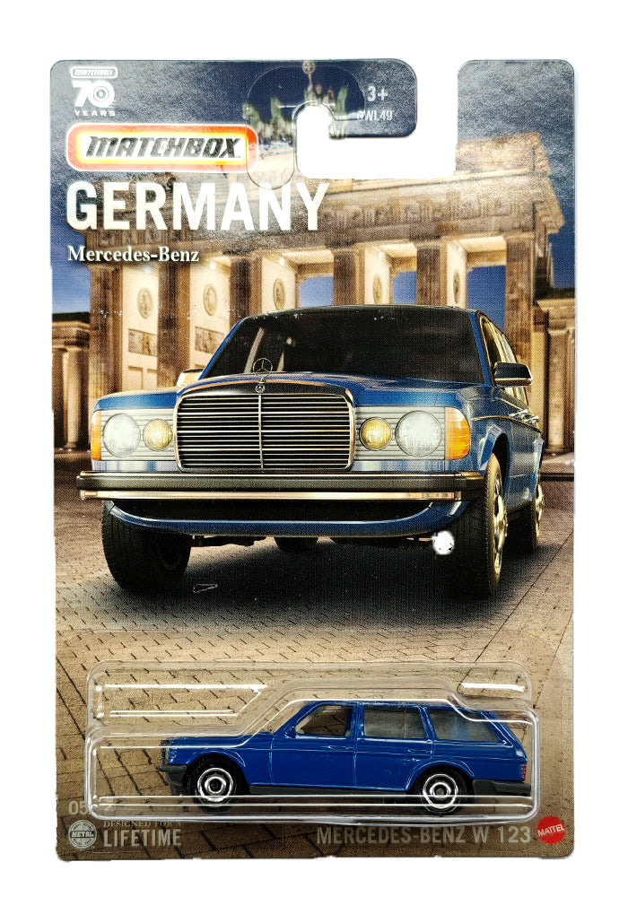EXCLUSIVES Matchbox Germany Mercedes-Benz W 123 - Blue - 2023 Card (With Protector Case)