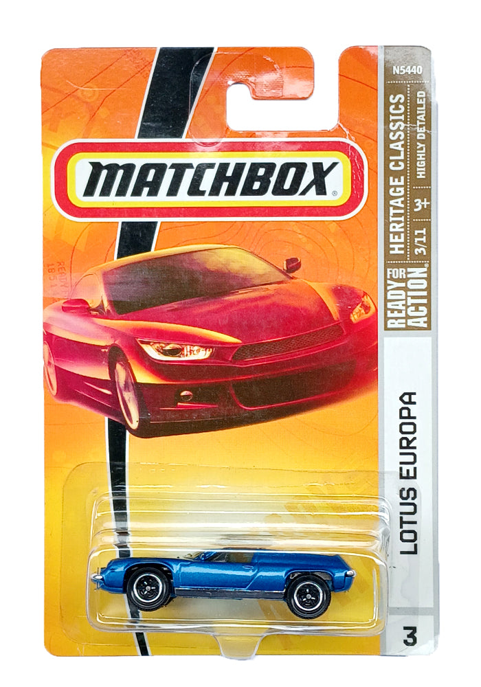 EXCLUSIVES Matchbox Lotus Europa - Blue - 2008 Card (Creased Card & Blister Damage / Car in Excellent Condition)